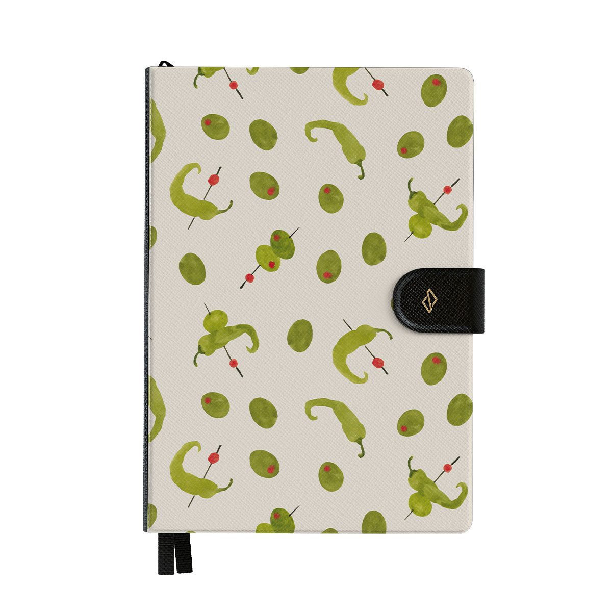 This design features: olives, peppers, Mediterranean pattern.