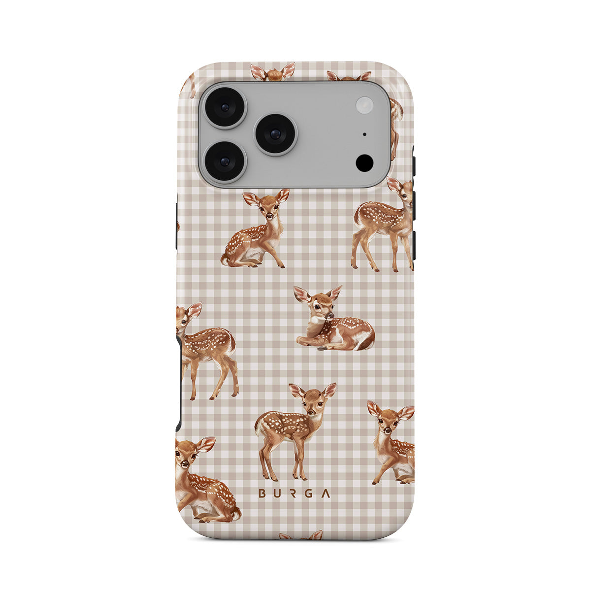 Gentle deers, frozen in time on a field of nostalgia, invite you to rediscover the playful innocence of quiet afternoons in the shade of old trees. Meet our Bambi iPhone 17 Pro Max phone case design.