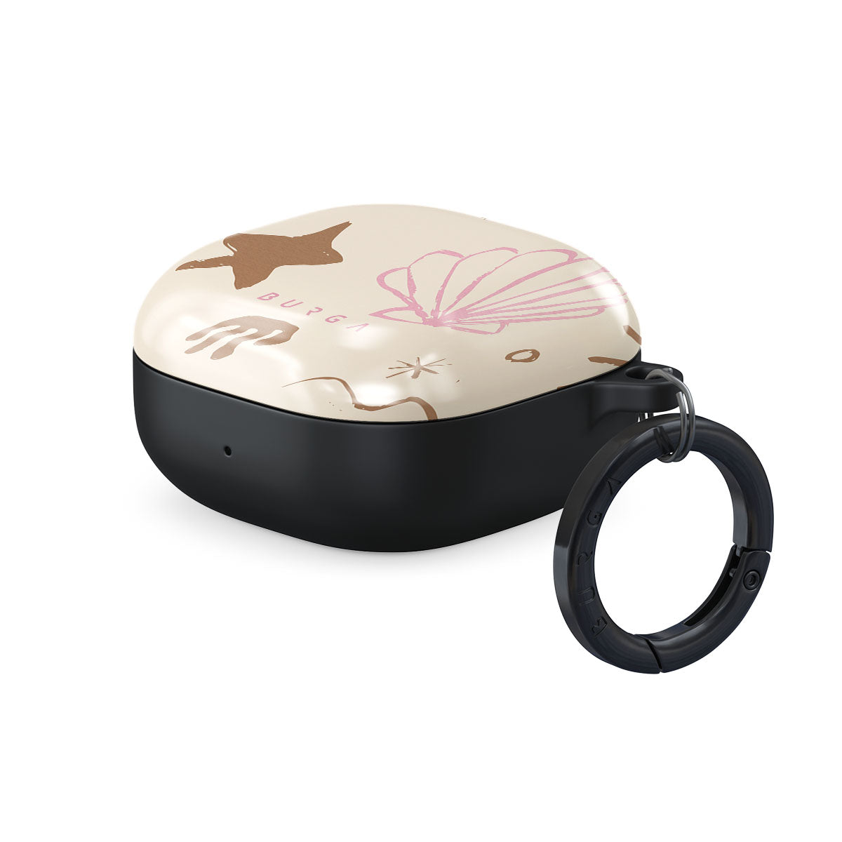 Our Beach Games Samsung Galaxy Buds Live case cover features a delightful design inspired by seaside treasures, including cute starfish, pink seashells, and playful wave patterns on a sandy background. This beach-themed pattern captures the essence of a fun day at the shore, evoking the joy of discovering beautiful ocean gems.