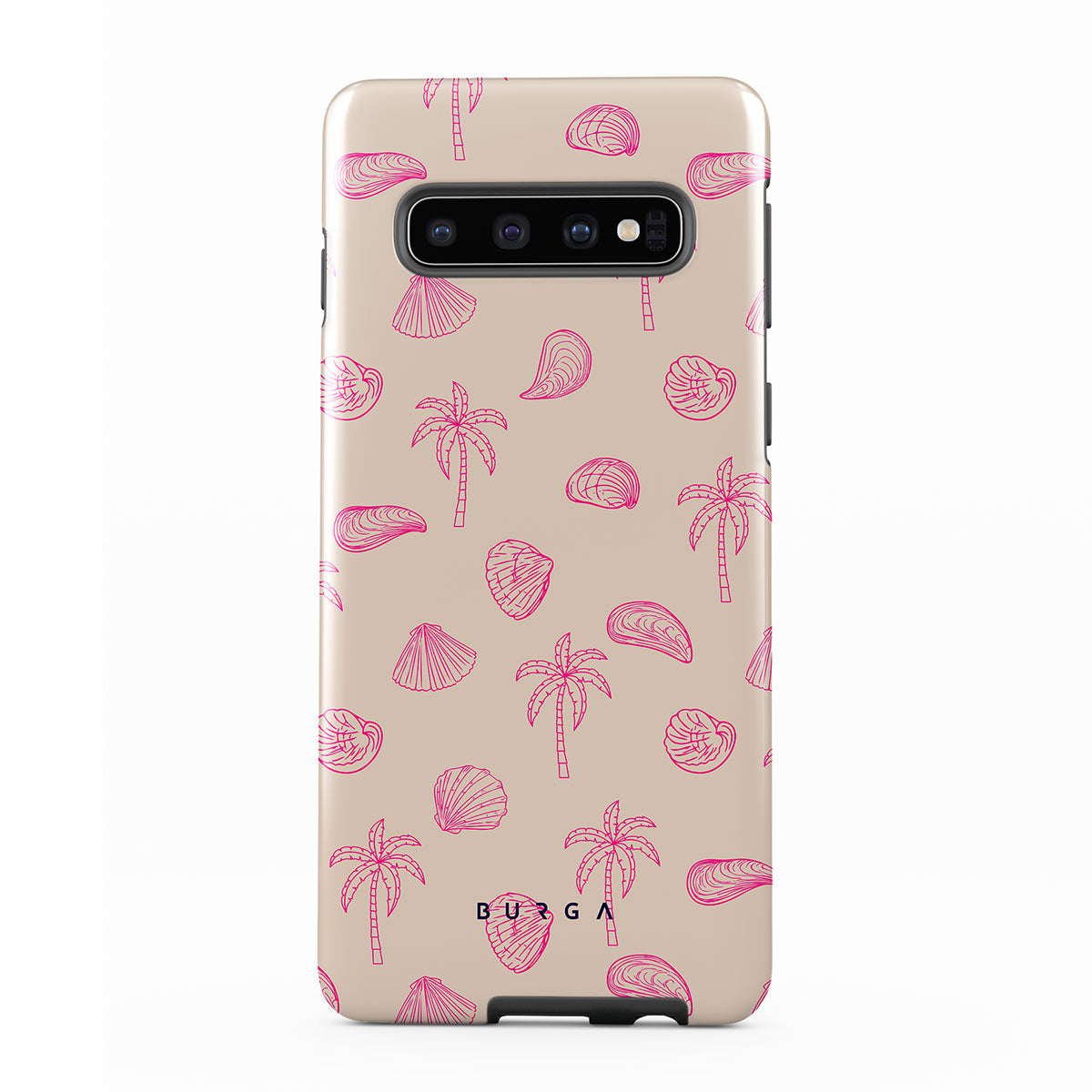 Lovely, beachy, and pink is what we can say about our Beach Please Samsung Galaxy S10 Plus phone case design. The playful pattern of palms and seashells will look cute in your summer selfies. Add that playful touch to your everyday life and keep your phone safe from scratches the sand can make!