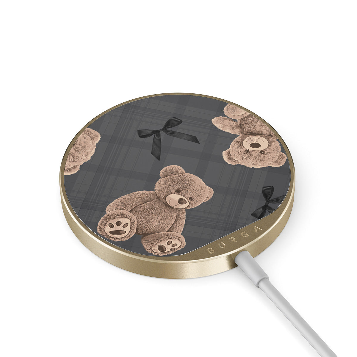 The 1.5m integrated cord makes it easy to charge wherever you are — at the office, chillin’ on the sofa, or killing time at the airport lounge. Plus, the BURGA glass back gives you 500+ prints to choose from, so your charger looks as good as your case.