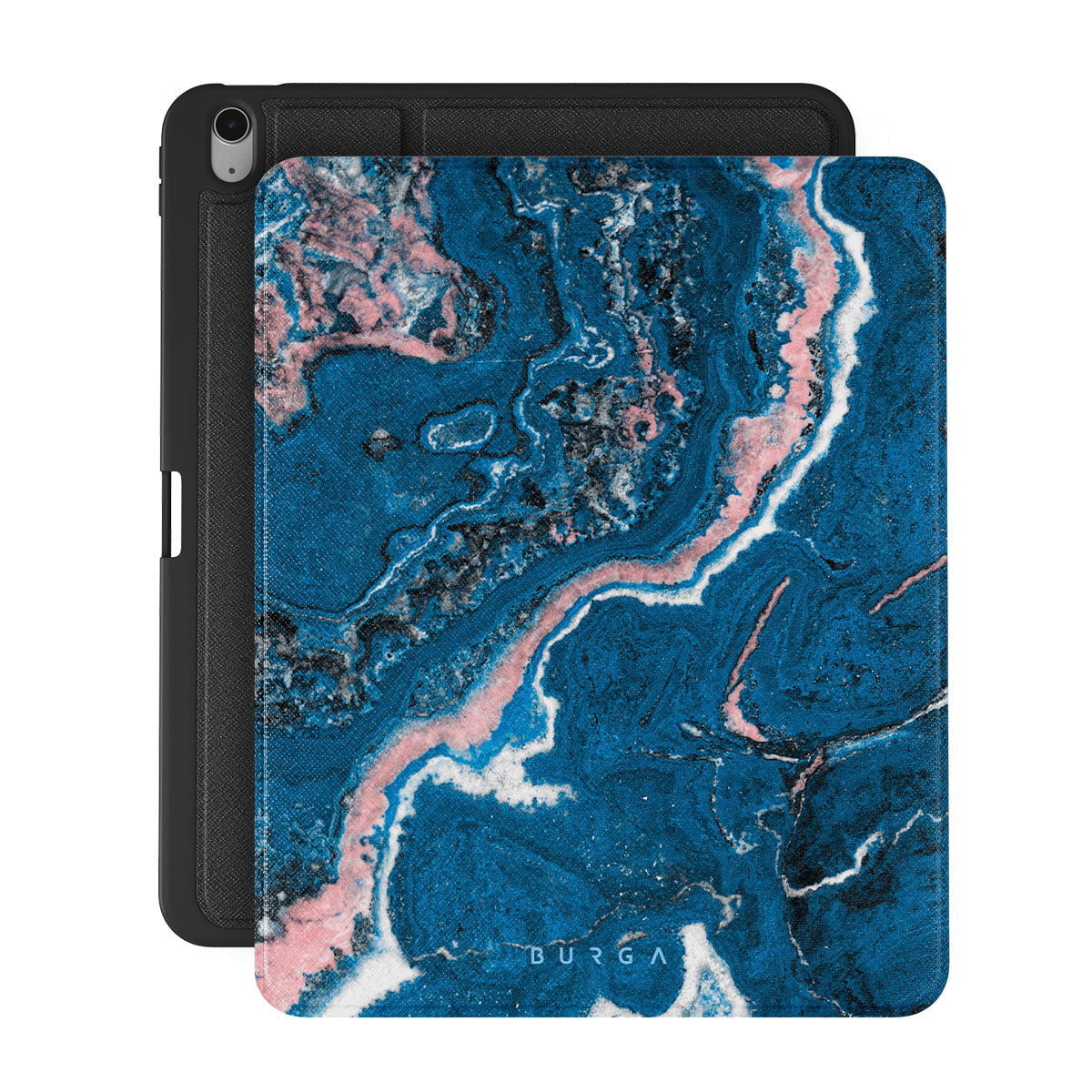 Electric indigo blue meets white, and pastel pink swirls in a unique marble pattern in our Blue Lagoon iPad Air 13 (7th/6th Gen) folio case. The modern take on a blue marble trend will look aesthetically pleasing on your device while offering durable protection from any falls.