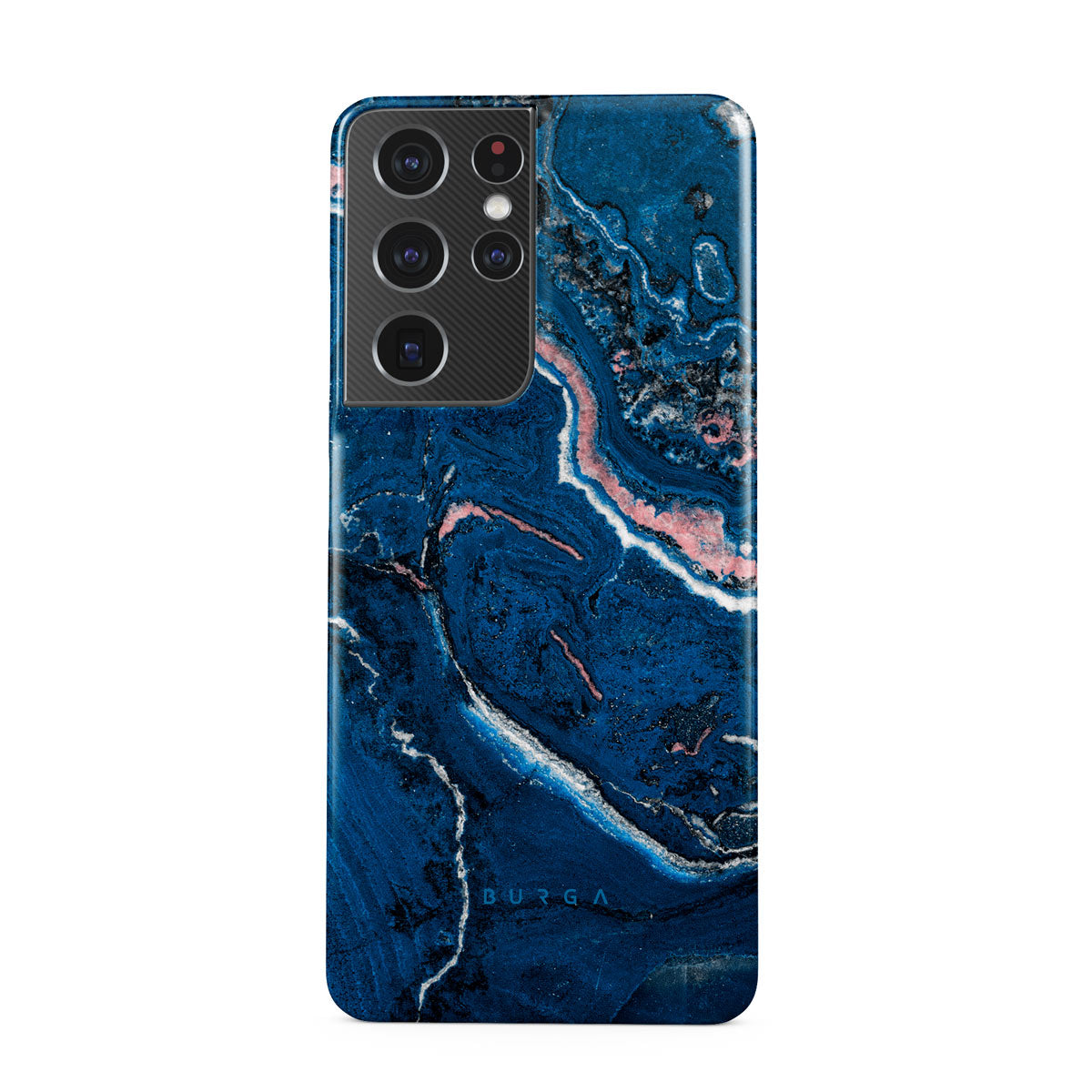 Electric indigo blue meets white, and pastel pink swirls in a unique marble pattern in our Blue Lagoon Samsung Galaxy S21 Ultra phone case. The modern take on a blue marble trend will look aesthetically pleasing on your device while offering durable protection from any falls.