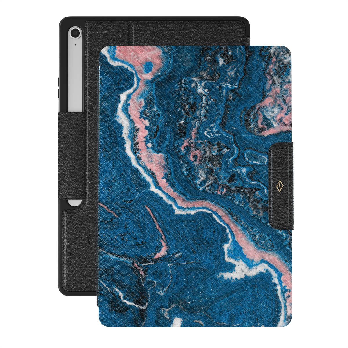 Electric indigo blue meets white, and pastel pink swirls in a unique marble pattern in our Blue Lagoon Samsung Galaxy Tab S10+ FE folio case. The modern take on a blue marble trend will look aesthetically pleasing on your device while offering durable protection from any falls.