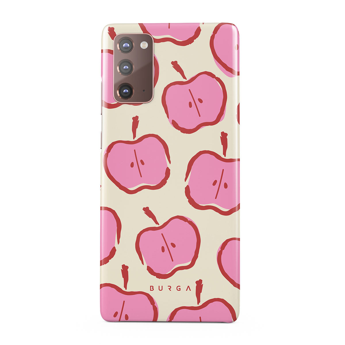 Our Bon Appétit Samsung Galaxy Note 20 4G / 5G phone case design makes every day feel like a magical adventure filled with sweet surprises. The playful pink hues of the apples stand out brilliantly against the serene cream background, creating a captivating and enchanting visual.