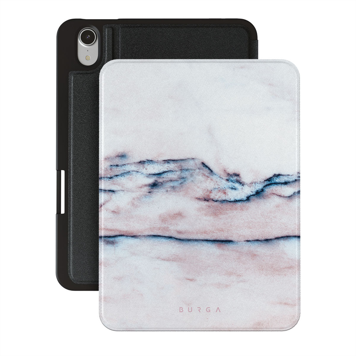 A pastel iPad case cover is a must in every collection, and our soft Bubble Gum iPad Mini 8.3 (A17 Pro/6th Gen) 2021 folio case is the one. The minimalistic design features a pink gradient with deep blue swirls in a marble pattern. Such a hard-shell case will provide heavy-duty protection while adding a touch of pastel to your collection