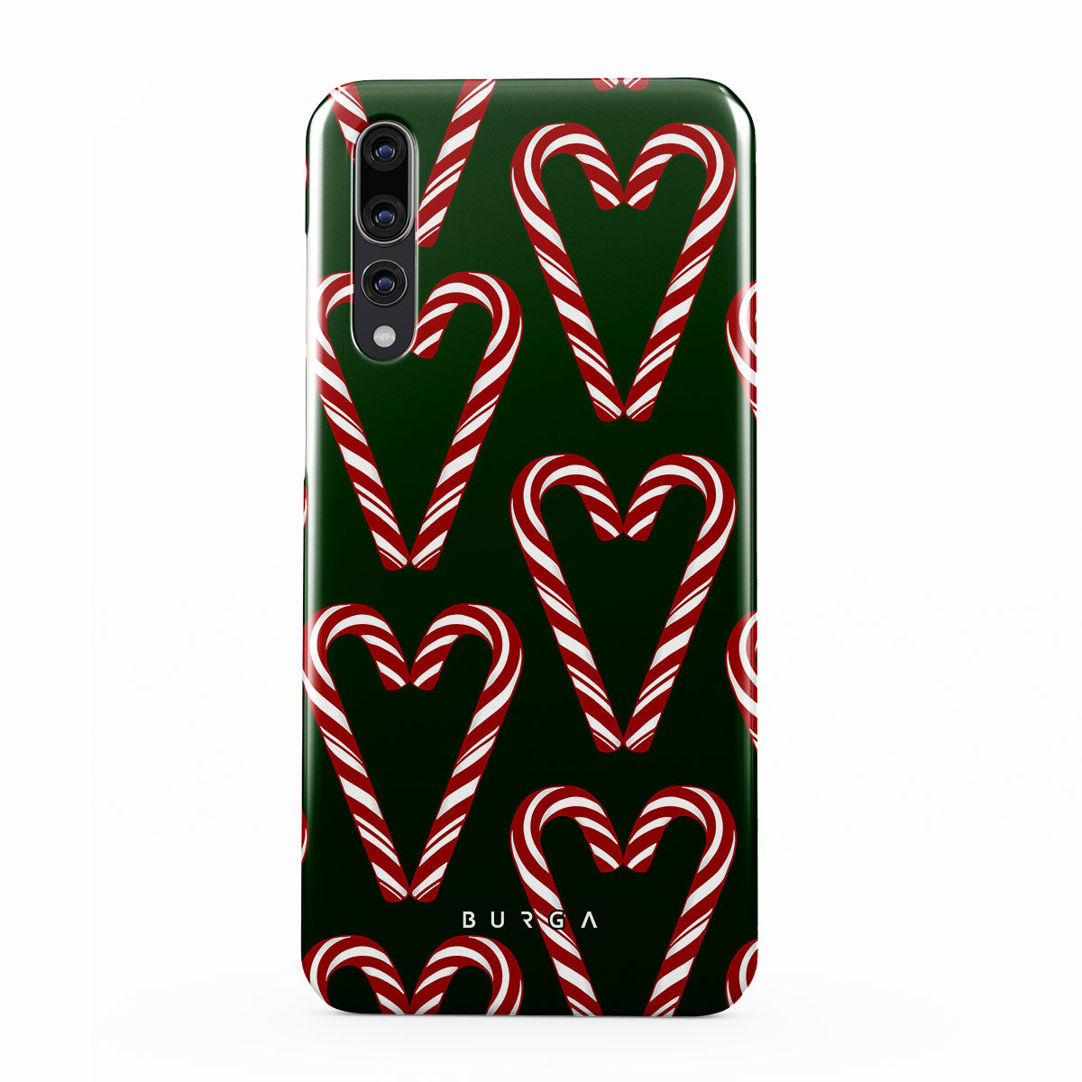 Vibrant and playful, our Candy Cane Huawei P20 Case phone case design showcases candy cane heart motifs against a dark green background—a delightful choice for those who love a touch of whimsy and nostalgia.