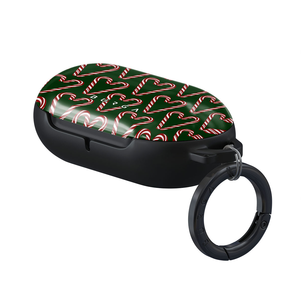 Vibrant and playful, our Candy Cane Samsung Galaxy Buds Plus case cover design showcases candy cane heart motifs against a dark green background—a delightful choice for those who love a touch of whimsy and nostalgia.