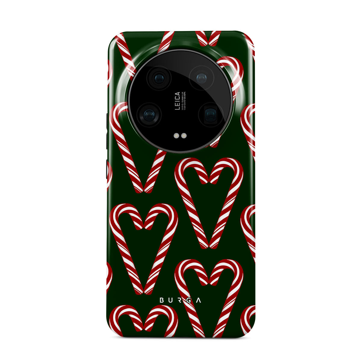 Vibrant and playful, our Candy Cane Xiaomi 14 Ultra Case phone case design showcases candy cane heart motifs against a dark green background—a delightful choice for those who love a touch of whimsy and nostalgia.