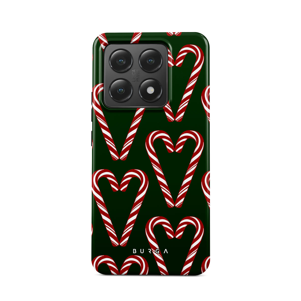 Vibrant and playful, our Candy CaneXiaomi 14T Case phone case design showcases candy cane heart motifs against a dark green background—a delightful choice for those who love a touch of whimsy and nostalgia.