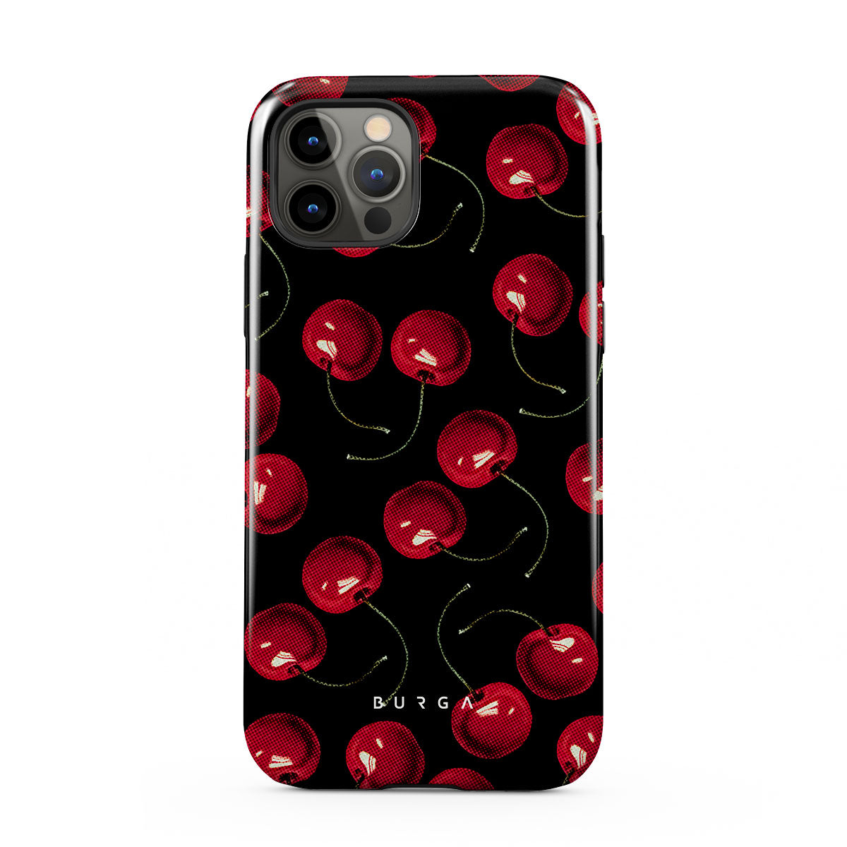 On a deep black background, rich red cherries stand out. Tempting and audacious, our Cherrybomb iPhone 12 Pro Max phone case design is perfect for anyone who likes to keep things simple yet striking.