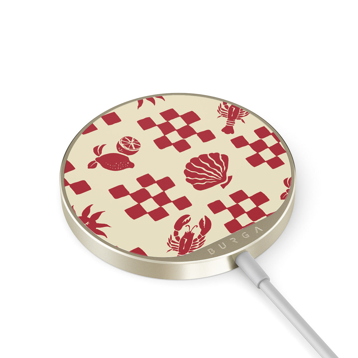 The 1.5m integrated cord makes it easy to charge wherever you are — at the office, chillin’ on the sofa, or killing time at the airport lounge. Plus, the BURGA glass back gives you 500+ prints to choose from, so your charger looks as good as your case.