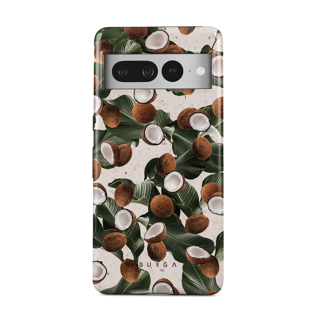 Coconut Crush Google Pixel 7 Pro phone case showcases a soft creme color design with a playful addition of coconuts on top. The unexpected design duo will add a touch of tropical playfulness to your style while offering heavy-duty protection for your cell phone.