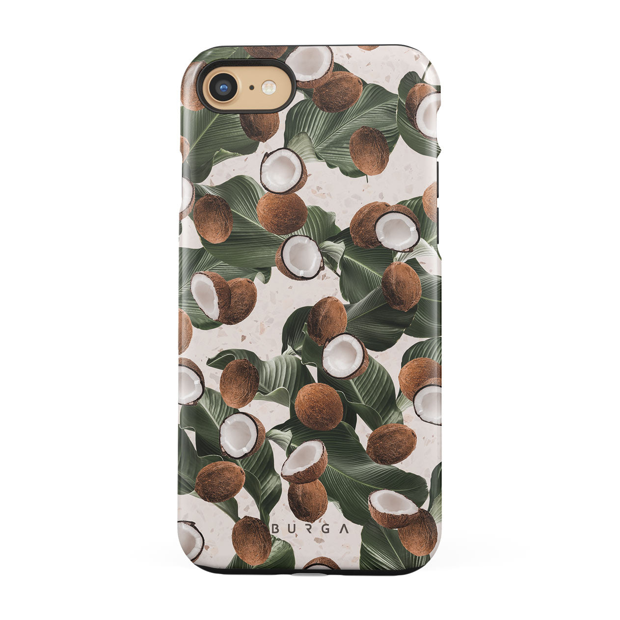 Coconut Crush iPhone SE (2022) phone case showcases a soft creme color design with a playful addition of coconuts on top. The unexpected design duo will add a touch of tropical playfulness to your style while offering heavy-duty protection for your cell phone.