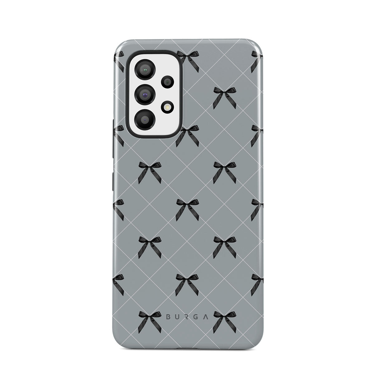 A subtle hint to a world of dance and soft melodies. Crisscrossing bows over a muted gray tone capture the flirtatious essence of the coquette-core aesthetic. Playful and sweet, our Coquette Samsung Galaxy A33 phone case design is perfect for those who find beauty in the details.