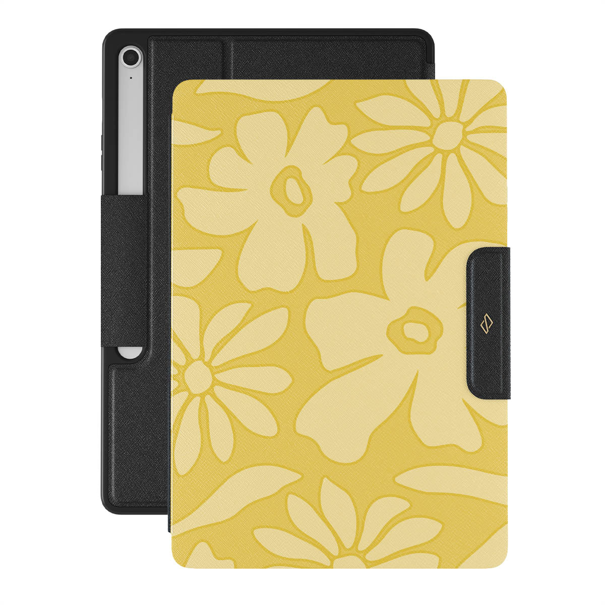 Our bright yellow Samsung Galaxy Tab S10+ FE folio case features bold, beautiful flowers that evoke a sense of nostalgia and happiness. This cheerful floral design captures the essence of joyful moments, making your device a reminder of sunny memories. Perfect for brightening up your day.