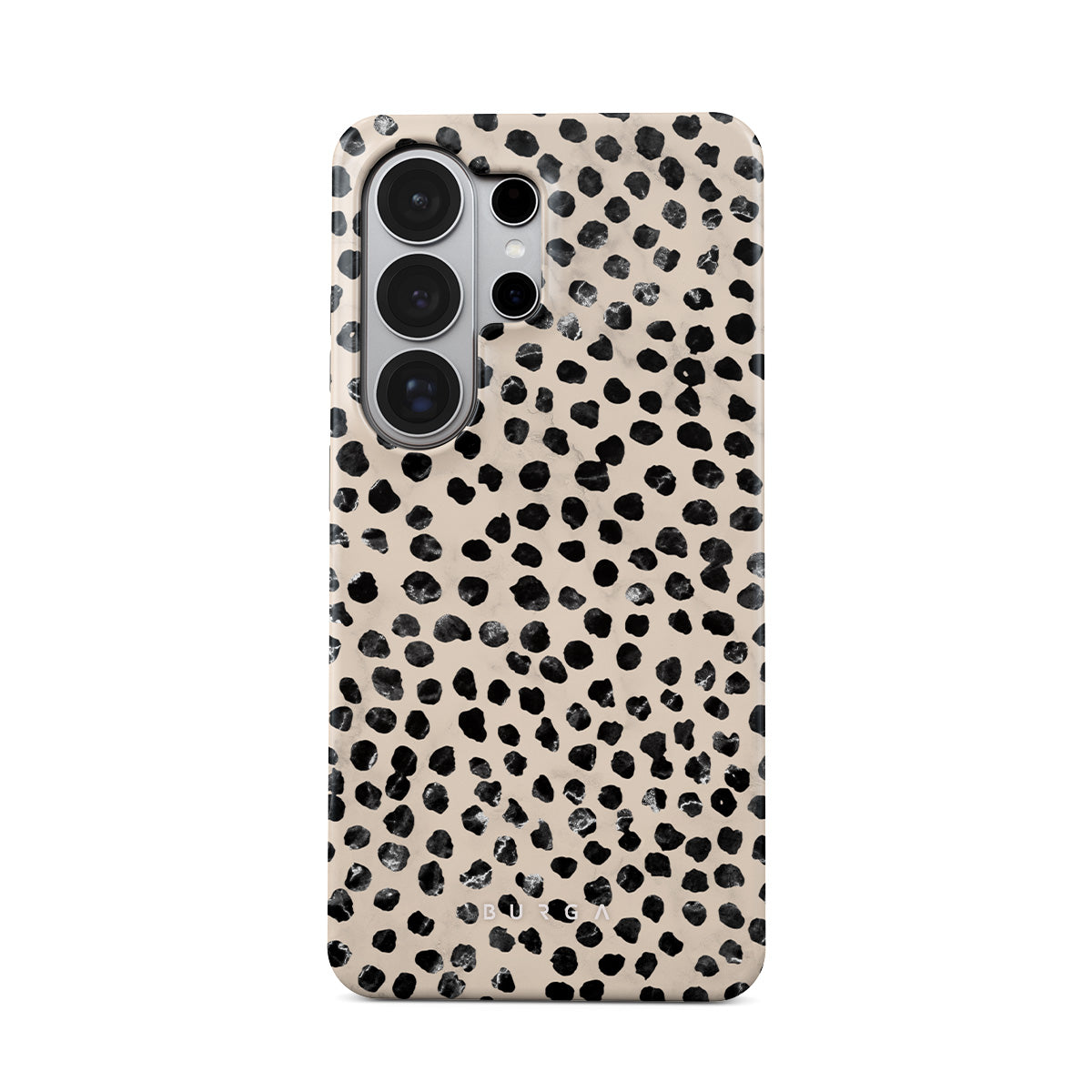 Cute cream color as a background for the unique pattern of asymmetrical black spots creates a real eye-catcher in our Almond Latte Samsung Galaxy S26 Ultra phone case. The spotted pattern adds a touch of luxury to your phone, while the case's hard-shell nature offers much-needed protection making it a popular choice between fashion lovers.