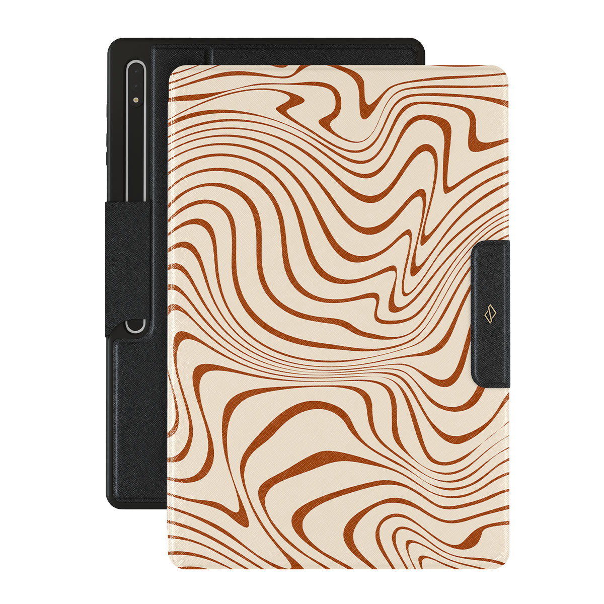 The title of our Déjà vu Samsung Galaxy Tab S9 Ultra folio case design is no accident! This design's feeling can only be described as the Déjà vu itself. The crème color meets the warm brown in a mesmerizing waves pattern that will surely add a touch of old times charm to your device.