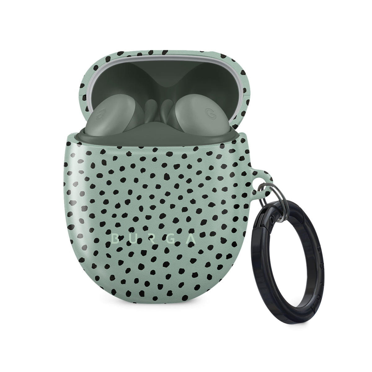 Our dotted mint green Google Pixel Buds A case cover will surely add a fresh feel to your outfit. Mint Gelato is a perfect dessert, and Our case with chocolate-like dots will add a summer touch to your accessory collection while keeping your Google Pixel Buds A case looking fresher than ever. Our case fits perfectly snug around Google Pixel Buds A . “Like a glove!” one might say. And it won’t disrupt the wireless charging capabilities of the newer model. There’s even an LED light indicator to prove it (don’t worry, wired charging still works, too). When fitted, the BURGA case will protect the delicate Google Pixel Buds A case beneath it from scratches, bumps, and drops while remaining scratch-free itself. Our signature design pattern prints are High Quality, and will never peel or fade away- thanks to our unique printing technology. And finally, a handy carabiner is there to make your life easier and more convenient: just snap it around your keys or belt loop and tackle the day head-on. Your music is right there by your side when you need it.