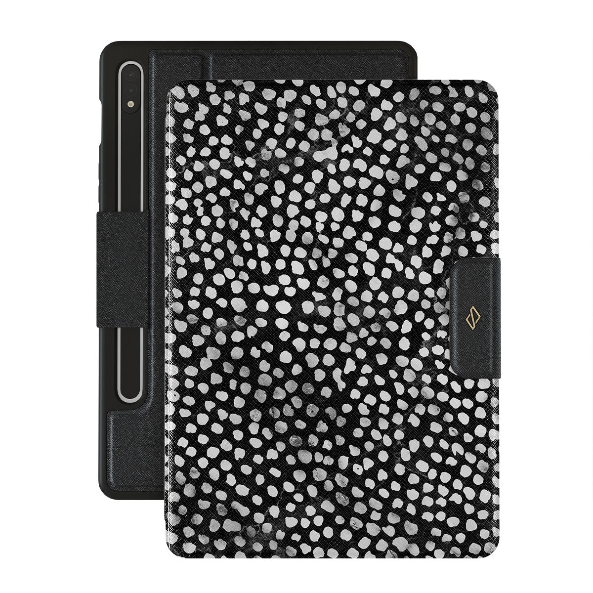 Dark, endless with flickering stars. Keep a part of the night sky in your pocket with Samsung Galaxy Tab S9+ FE folio case cover inspired by the sky above us. The classy dotted pattern found on the case is a must in every accessory lover's collection.