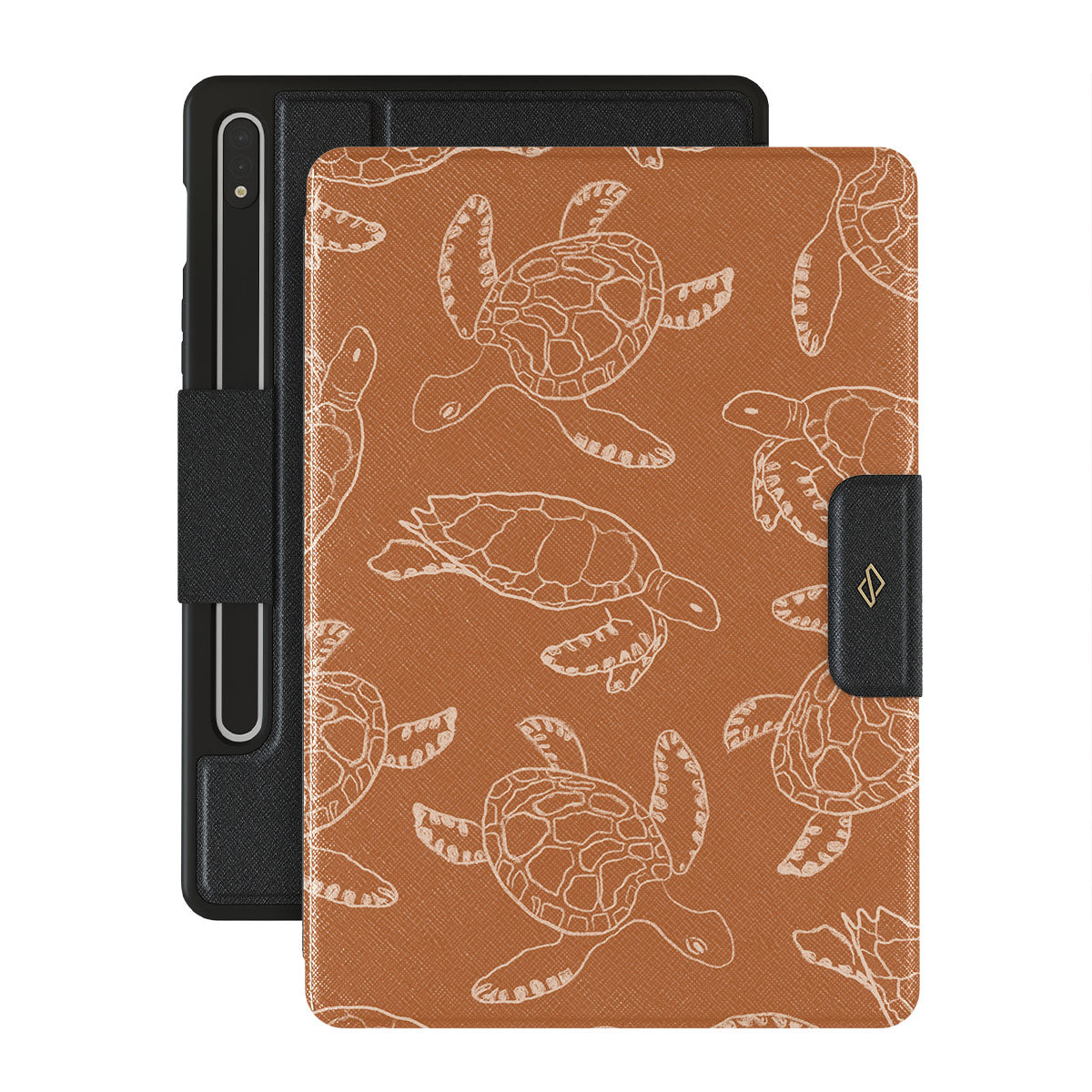 Step into a world of pure bliss and turtle magic with our Earth Shell design. The rich earth tones creating a calming ambiance blend beautifully with the playful turtles floating into adventure. Embark on a thrilling escapade to reconnect with nature with our Earth Shell Samsung Galaxy Tab S10+ folio case.