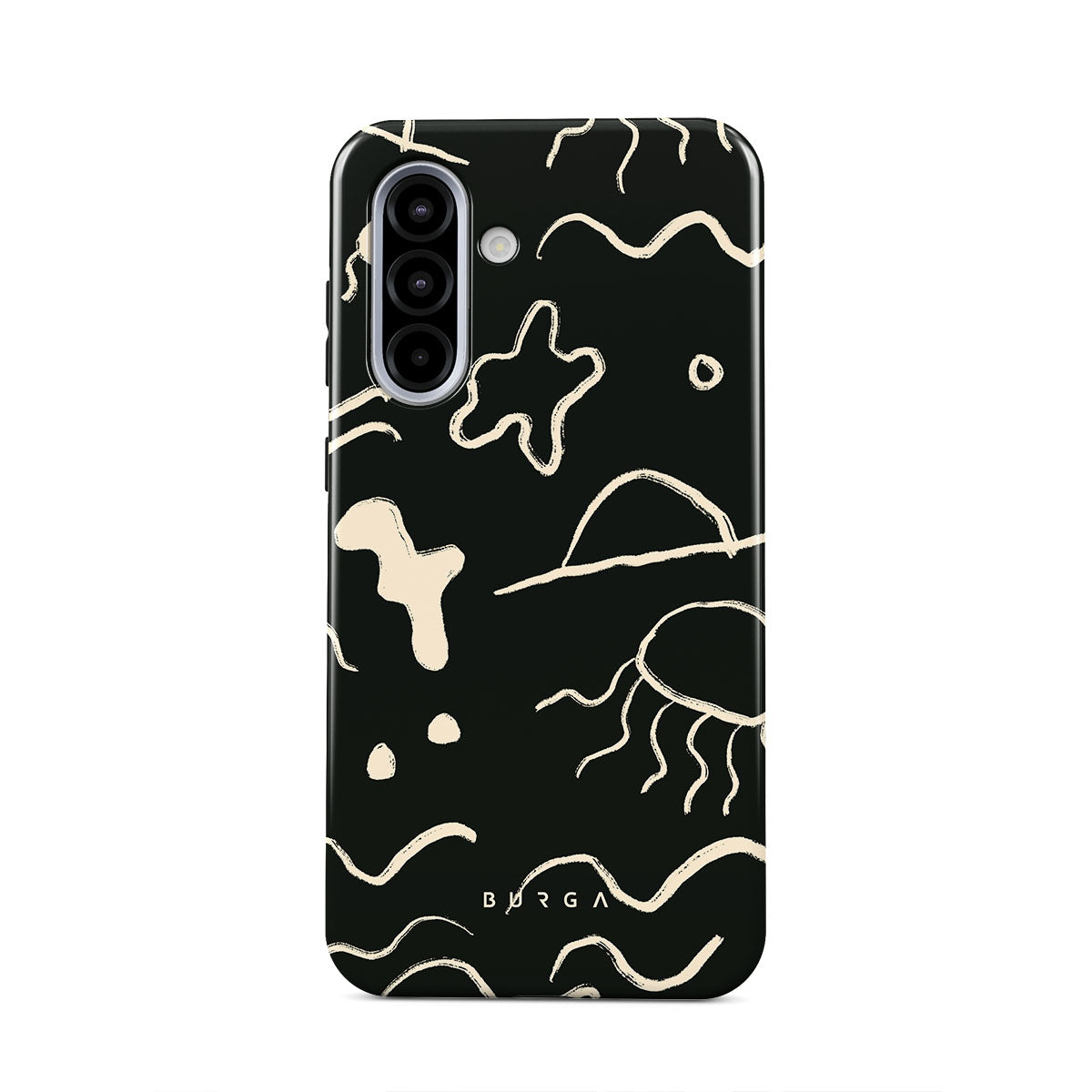 Our Eclipse Samsung Galaxy A36 5G design reflects the enigmatic beauty of the ocean during a solar eclipse. The dark hues and bright accents represent how the light dances on the water, while the waves and jellyfish capture the serene yet dynamic nature of the ocean.