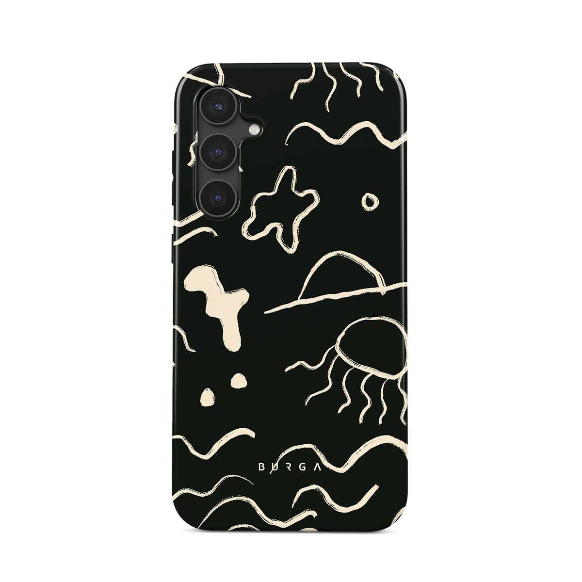 Our Eclipse Samsung Galaxy S23 FE design reflects the enigmatic beauty of the ocean during a solar eclipse. The dark hues and bright accents represent how the light dances on the water, while the waves and jellyfish capture the serene yet dynamic nature of the ocean.