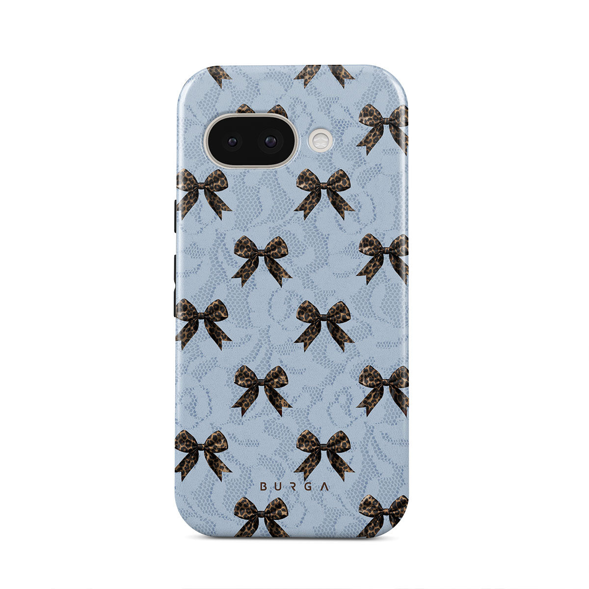 For those who command attention with subtle elegance, our Fashionista Google Pixel 9a phone case design is your go-to. A soft blue background, accented by dark grey bows and subtle lace patterns, exudes polished, effortless style. It's quiet confidence with a hint of charm.
