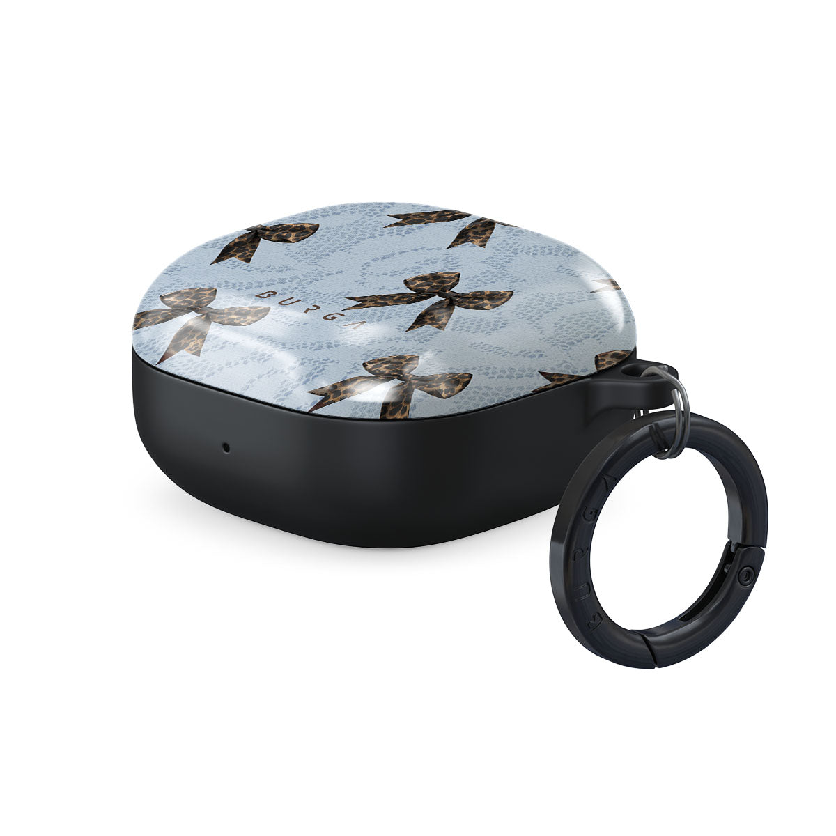 For those who command attention with subtle elegance, our Fashionista Samsung Galaxy Buds 2 case cover design is your go-to. A soft blue background, accented by dark grey bows and subtle lace patterns, exudes polished, effortless style. It's quiet confidence with a hint of charm.