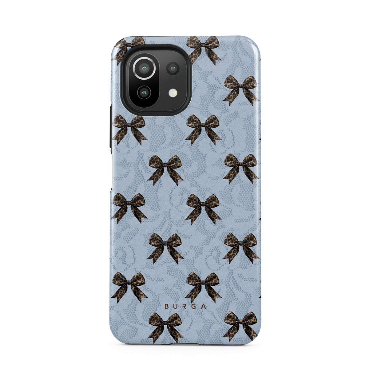 For those who command attention with subtle elegance, our Fashionista Xiaomi 11 Lite 5G NE phone case design is your go-to. A soft blue background, accented by dark grey bows and subtle lace patterns, exudes polished, effortless style. It's quiet confidence with a hint of charm.