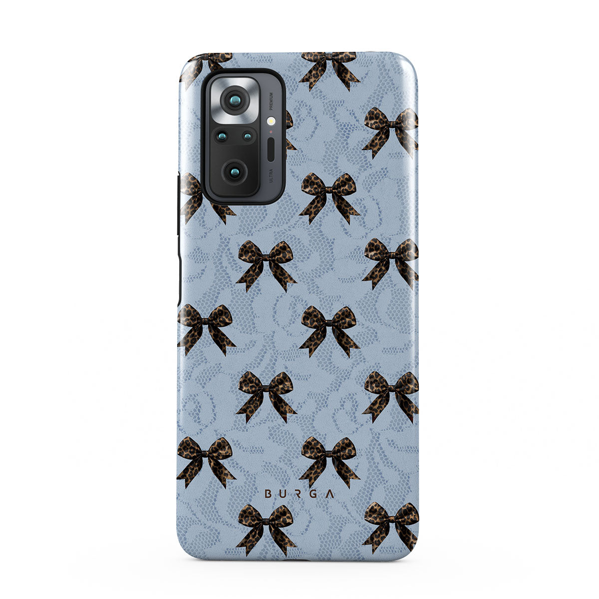 For those who command attention with subtle elegance, our Fashionista Xiaomi Redmi Note 10 Pro phone case design is your go-to. A soft blue background, accented by dark grey bows and subtle lace patterns, exudes polished, effortless style. It's quiet confidence with a hint of charm.