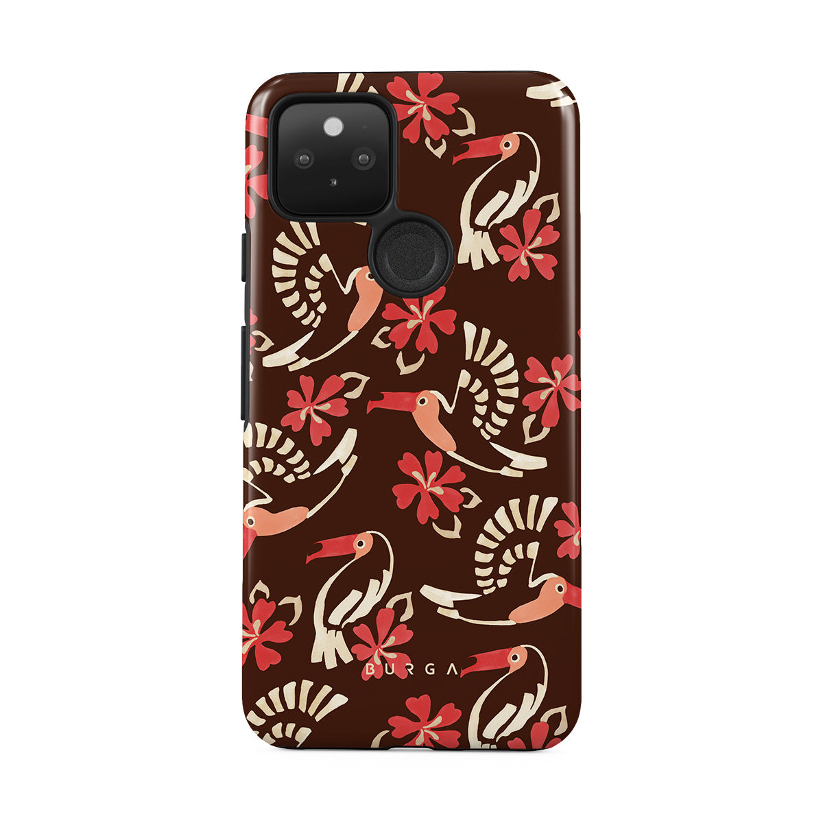A jungle rave. Parrots, florals, bursts of red and cream—like someone threw a party in the rainforest and forgot to send you the invite. This Google Pixel 5 phone case design is your RSVP.