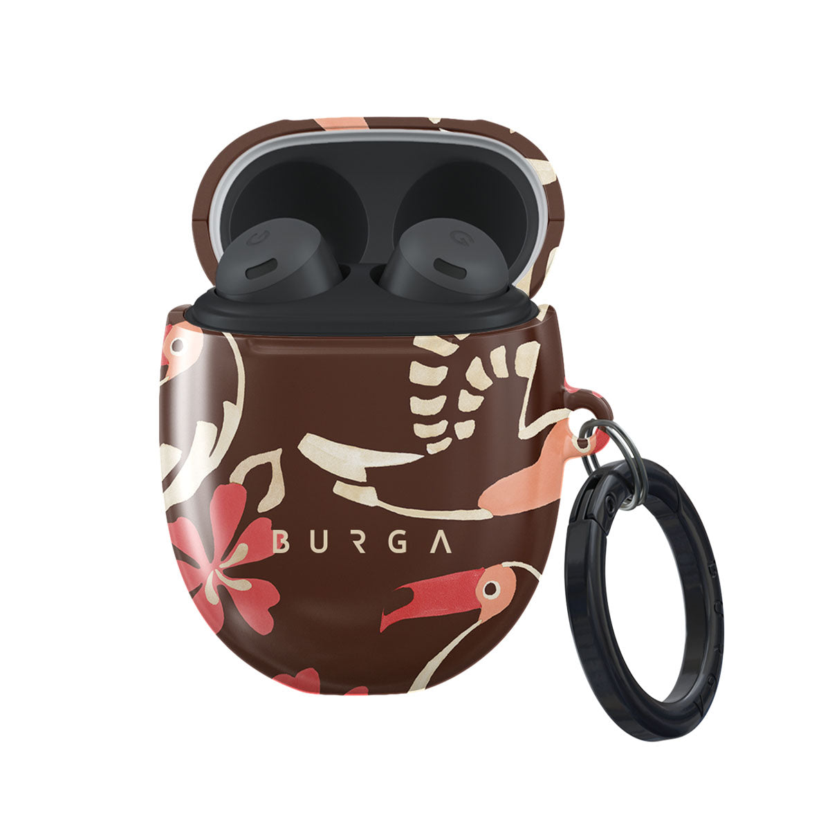A jungle rave. Parrots, florals, bursts of red and cream—like someone threw a party in the rainforest and forgot to send you the invite. This Google Pixel Buds Pro design is your RSVP.