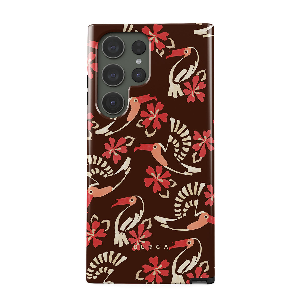 A jungle rave. Parrots, florals, bursts of red and cream—like someone threw a party in the rainforest and forgot to send you the invite. This Samsung Galaxy S23 Ultra phone case design is your RSVP.