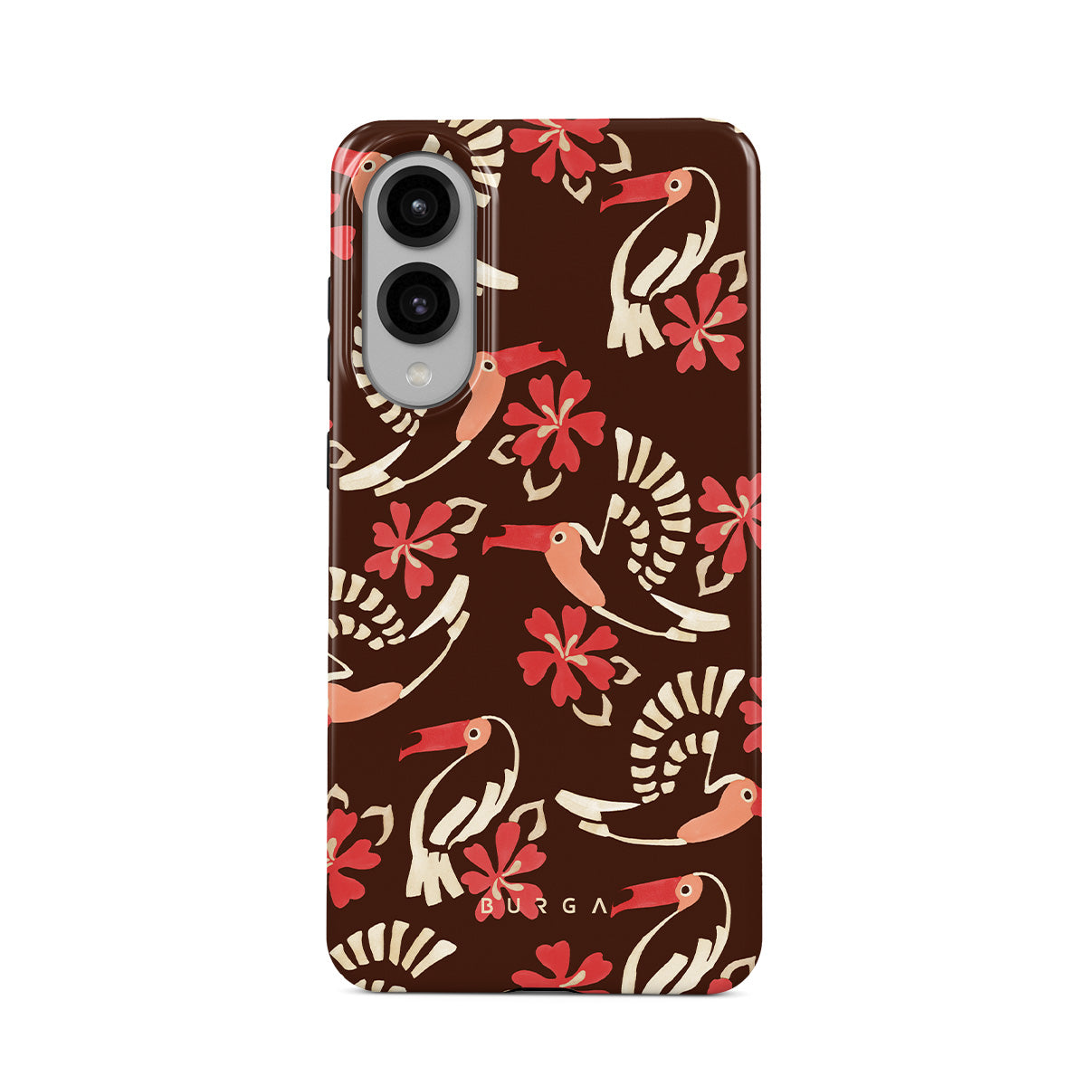 A jungle rave. Parrots, florals, bursts of red and cream—like someone threw a party in the rainforest and forgot to send you the invite. This Samsung Galaxy S25 Edge phone case design is your RSVP.