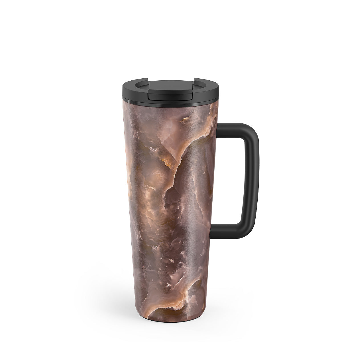 Real-life friendly from every angle. The slim base fits most car cup holders. The large handle feels steady when you’re on the move. The non-slip rubber pad protects your desk and helps prevent knocks.