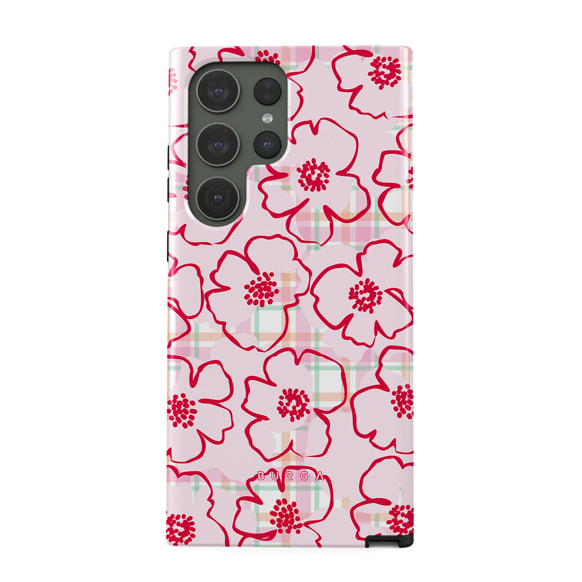 Pink flowers bloom from this Samsung Galaxy S23 Ultra phone case design—just like the ones you’d pick and put in your hair, simple and pretty, turning every walk through the garden into a fairy tale.