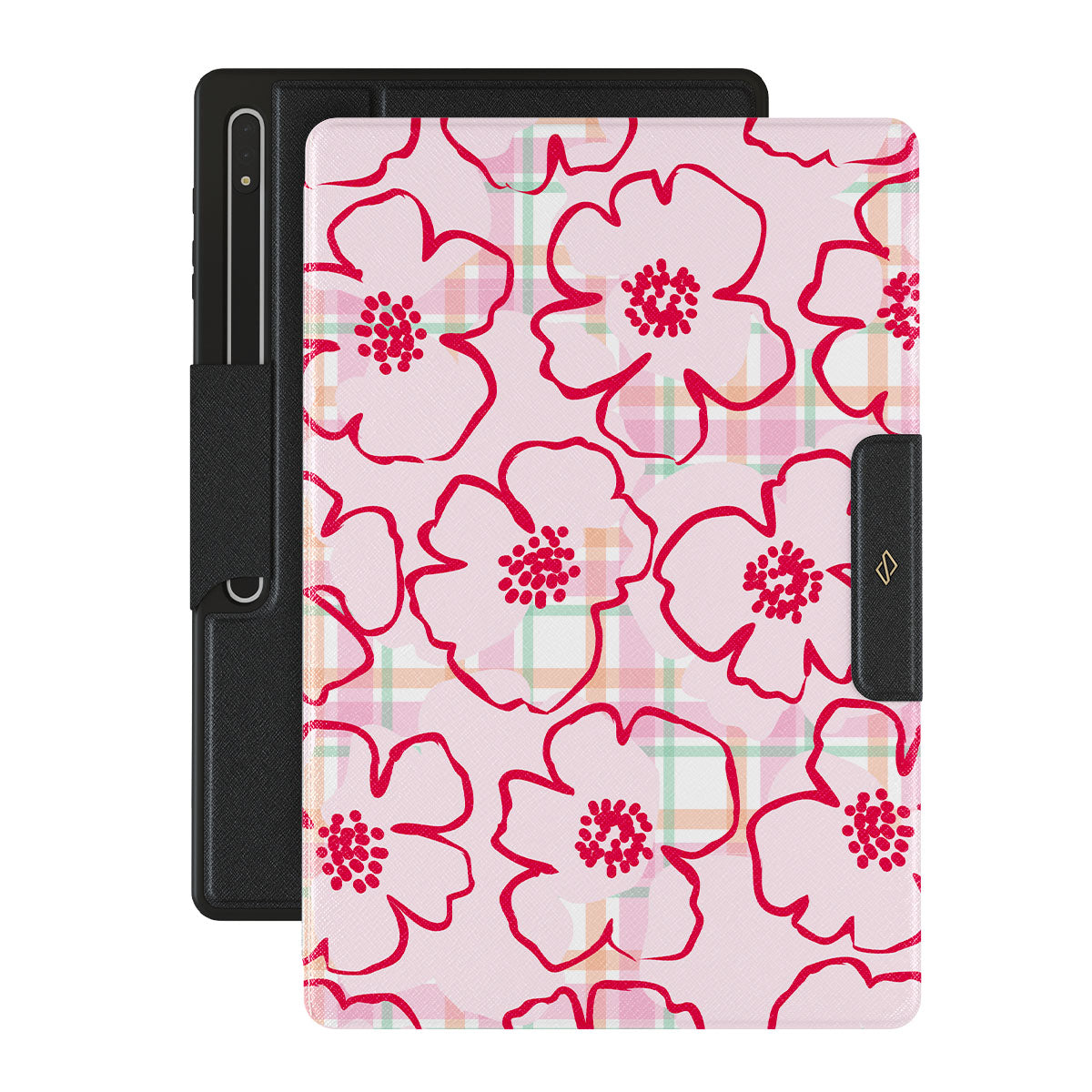 Pink flowers bloom from this Samsung Galaxy Tab S9 Ultra folio case design—just like the ones you’d pick and put in your hair, simple and pretty, turning every walk through the garden into a fairy tale.