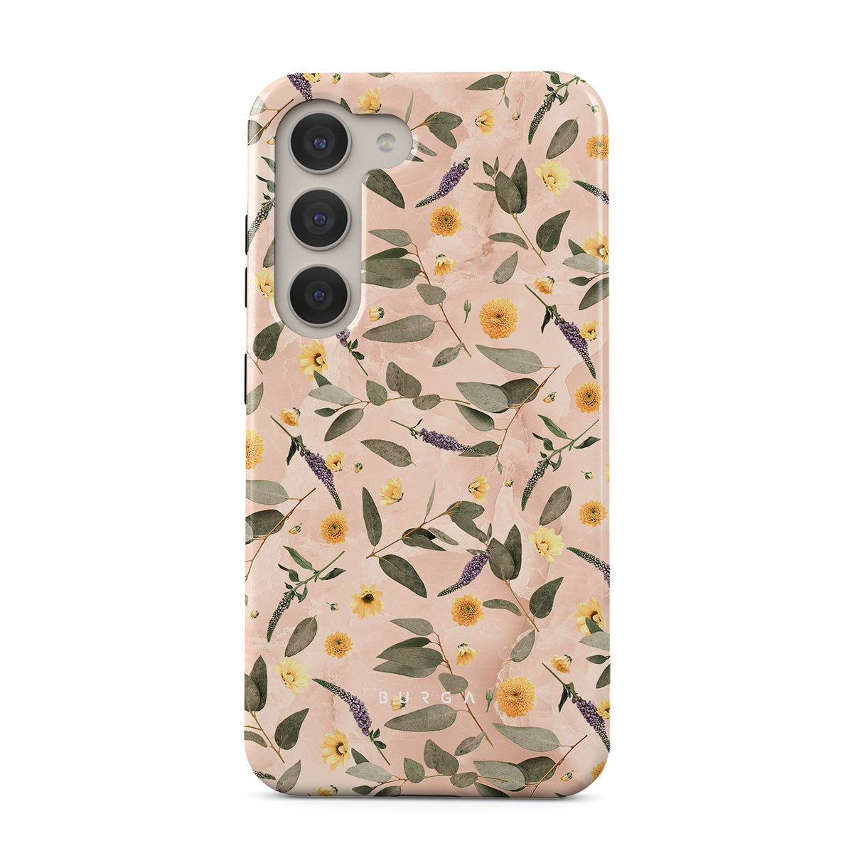 Sunday Brunch Samsung Galaxy S23 phone case features a timeless flower pattern. The soft-toned case with a pop of lavender and yellow colors will add a splash of energy to your style while protecting your phone from dangerous falls.