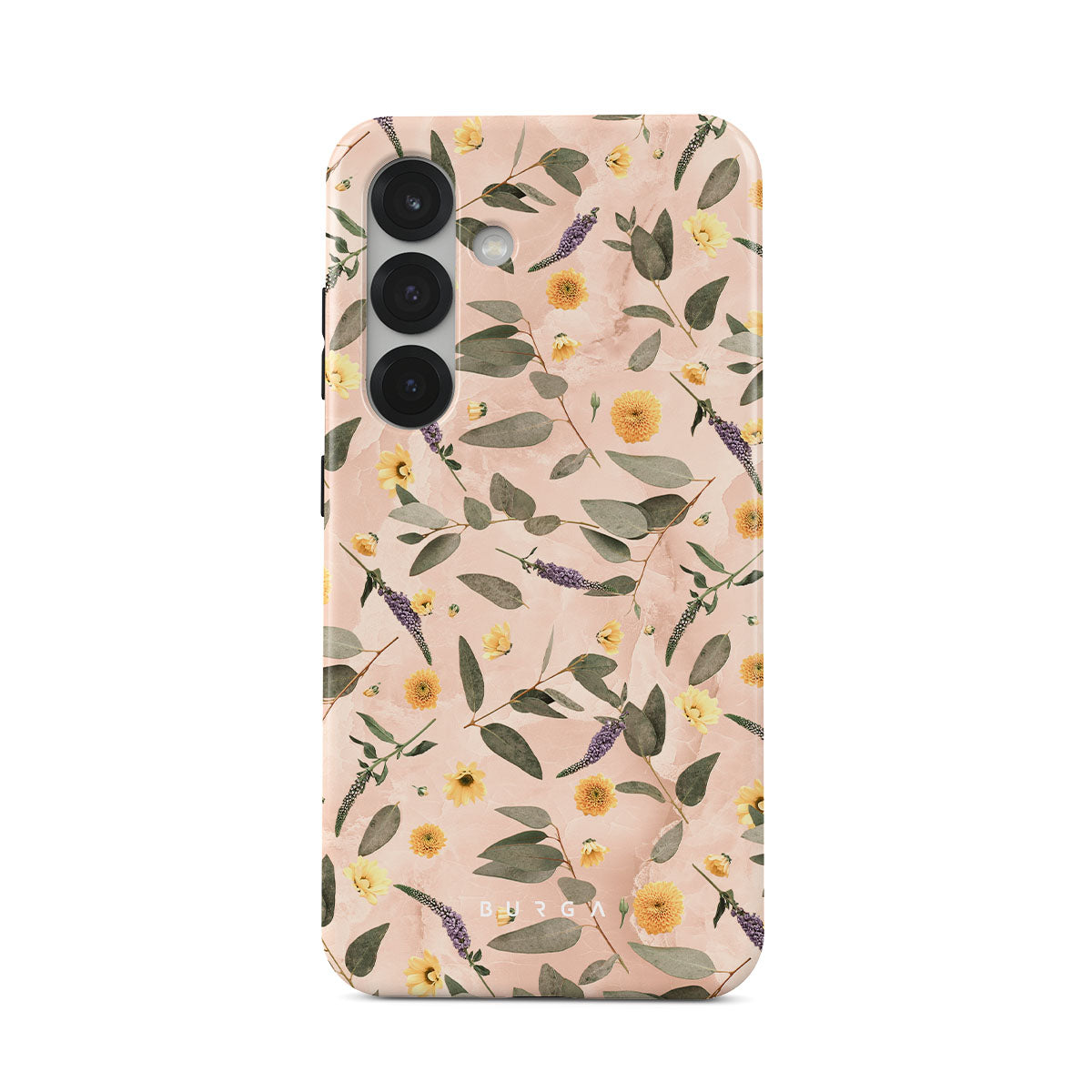 Sunday Brunch Samsung Galaxy S25 phone case features a timeless flower pattern. The soft-toned case with a pop of lavender and yellow colors will add a splash of energy to your style while protecting your phone from dangerous falls.