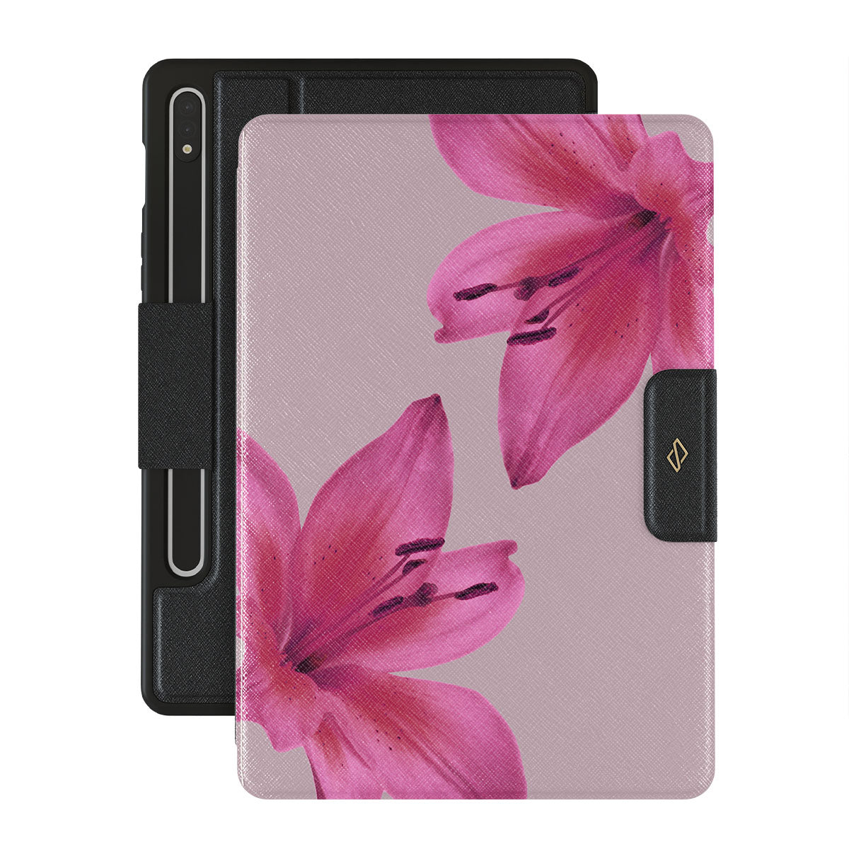 A gentle hush of pink forms where soft lilies sway. Their tender petals — a silent ode to the delicate dance of life. The Fragile Beauty Samsung Galaxy Tab S8+/S7+/S7 FE folio case design invites you to lean into the soft embrace of nature, letting its subtle rhythms guide your journey.