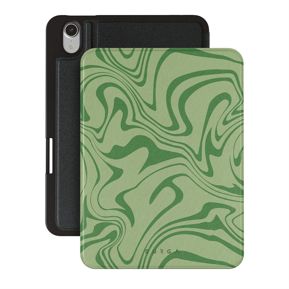 Our Funky Sensation iPad Mini 8.3 (A17 Pro/6th Gen) 2021 folio case design is a perfect abstract piece for those who love soft pastel colors but still want to stand out. A sharper take on the liquid swirl design in green shades will accompany your device perfectly.