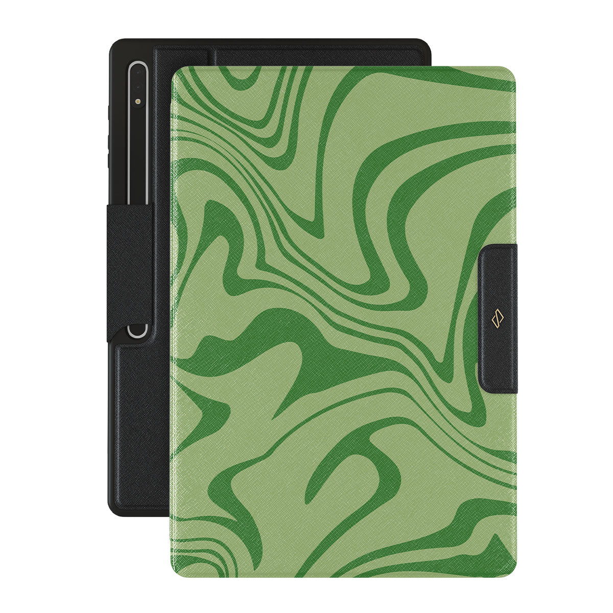 Our Funky Sensation Samsung Galaxy Tab S9 Ultra folio case design is a perfect abstract piece for those who love soft pastel colors but still want to stand out. A sharper take on the liquid swirl design in green shades will accompany your device perfectly.