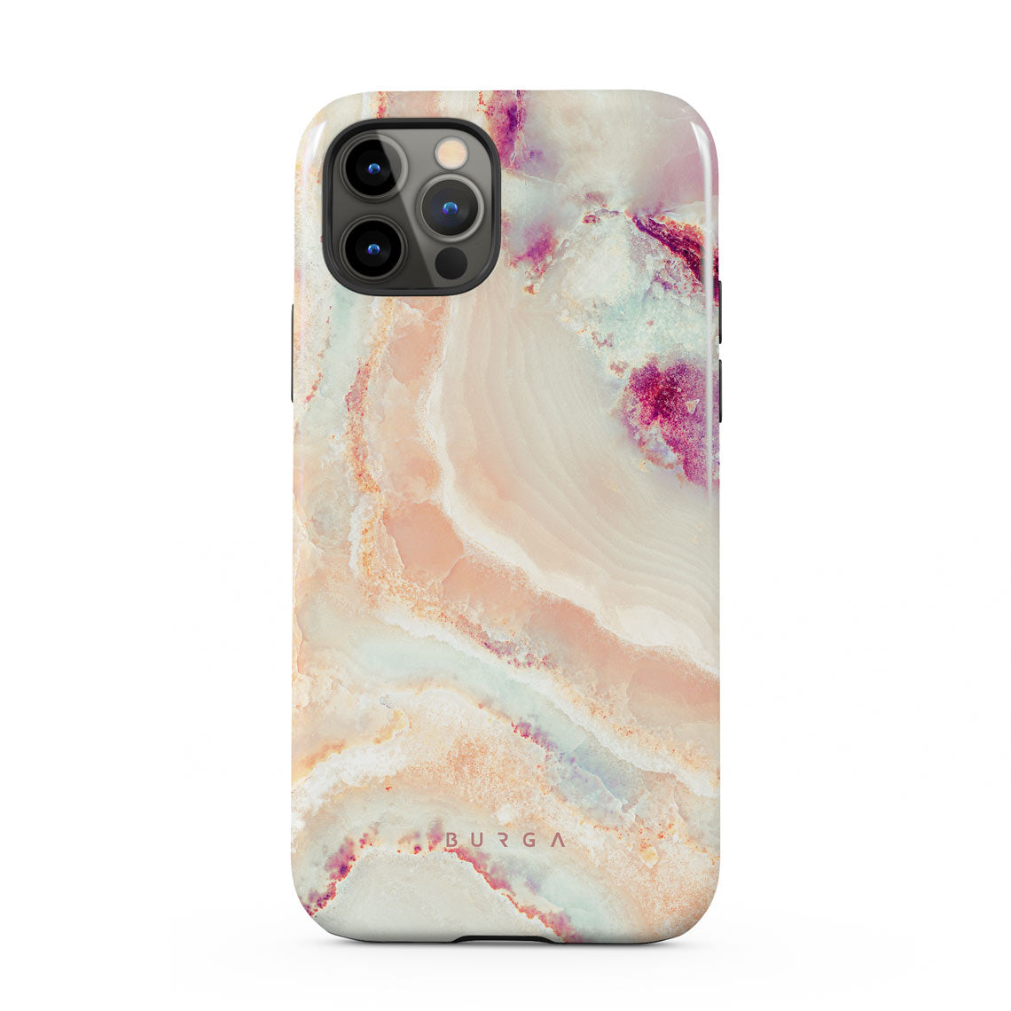 The soft color scheme of coral, pink, blue, and purple of our Berry Sorbet iPhone 12 Pro phone case radiates soft girly vibes. The feminine touch is felt throughout the design, making it an excellent choice to add to the springtime wardrobe and protect your phone from scratches and falls.
