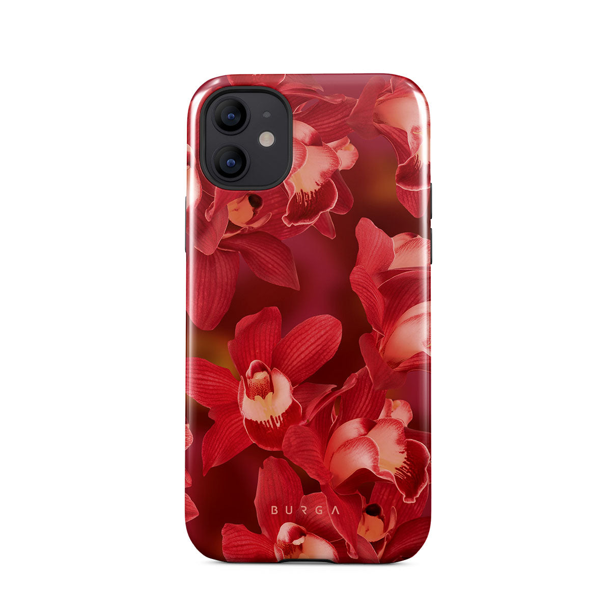 The deep red orchids emerge with a passionate intensity, evoking the fervor and depth of emotions that come with fully experiencing life. They are a vibrant call to embrace every heartbeat, to live deeply and love boldly. Discover the Goddess Energy iPhone 12 phone case design.