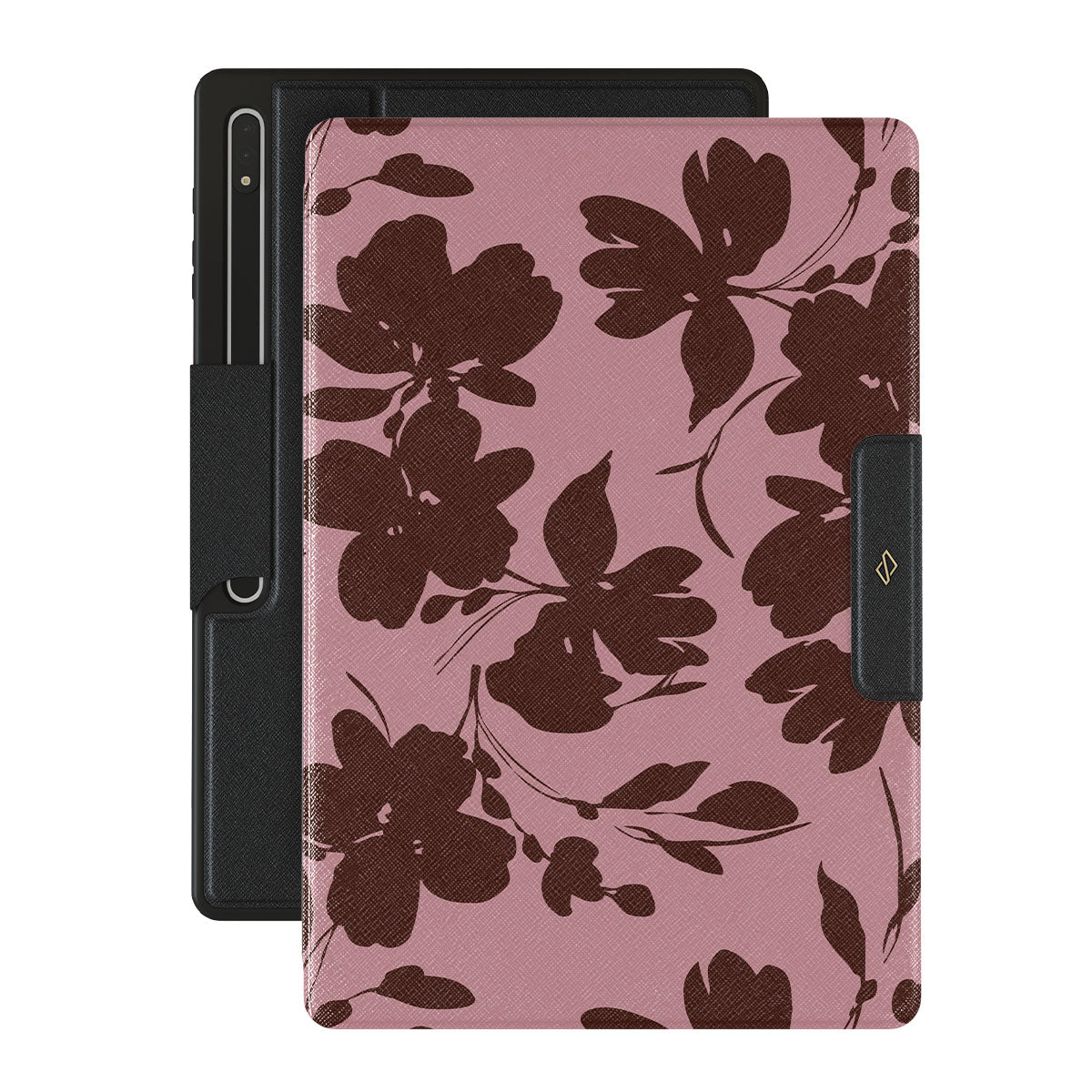 Quietly bold, our Gossip Samsung Galaxy Tab S9 Ultra folio case design speaks volumes in subtlety. A soft rosé background, layered with deep red-brown floral accents, gives off a refined, almost mysterious vibe. It's for those who let the details do the talking.