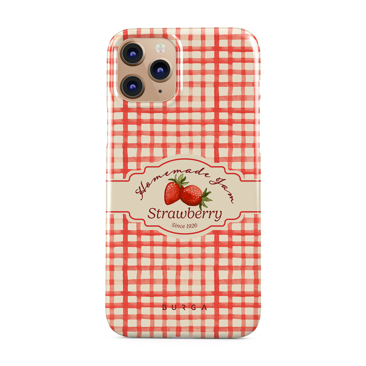 This design features: strawberries, gingham checks, jam label illustrations, vintage food graphic