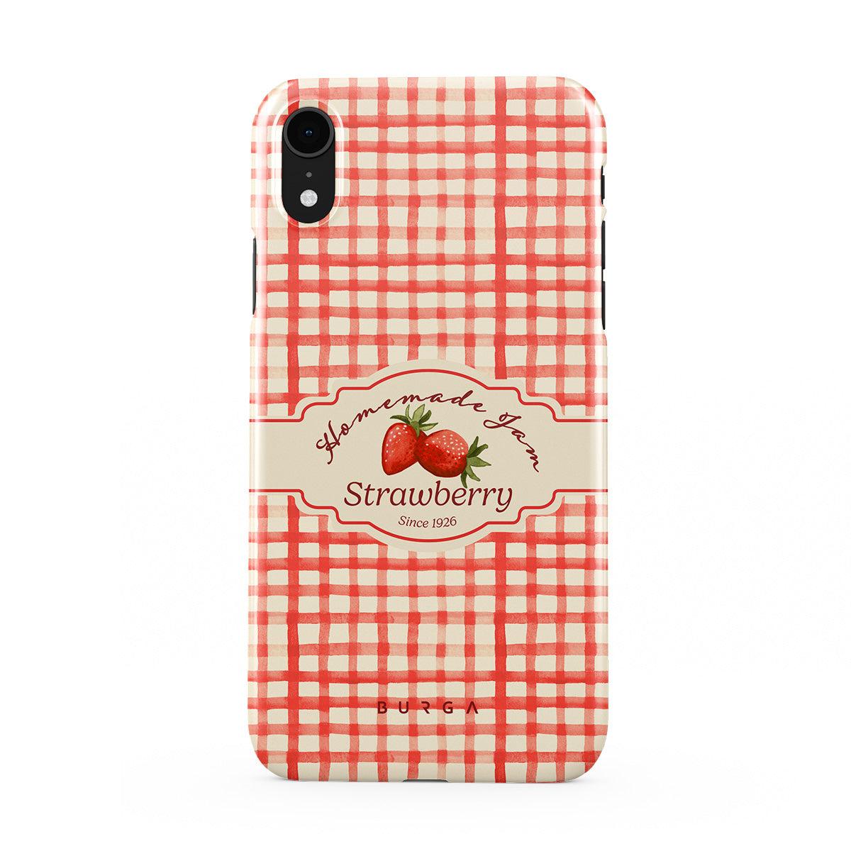 This design features: strawberries, gingham checks, jam label illustrations, vintage food graphic