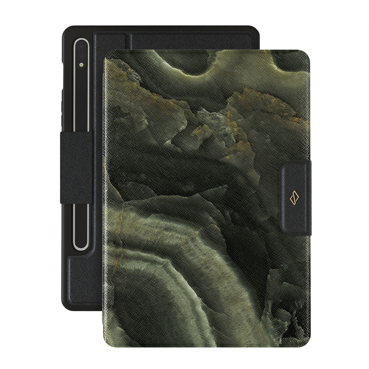 Carry the mystery of unexplored land found in an ominous misty forest with a green marble Samsung Galaxy Tab S9+ folio case inspired by it. The case combines the popular marble trend with heavy-duty protection becoming a unique companion to your device.
