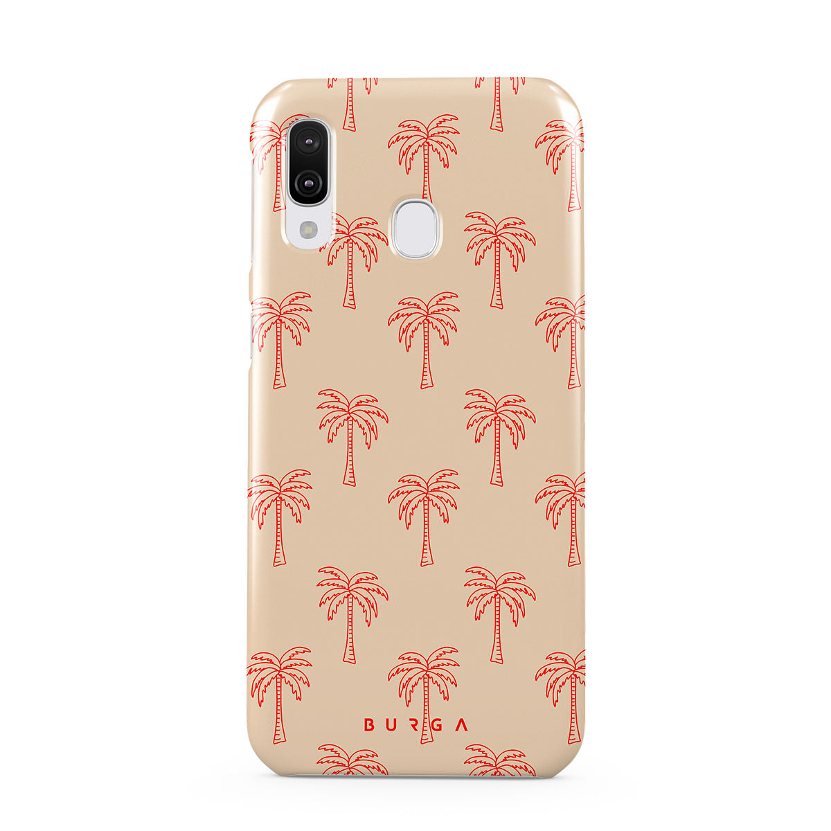 Retreat into the serene whispers of our Happy Hour design. Gentle pink palms sway on a soothing blush background, creating images of a tranquil paradise. This Samsung Galaxy A40 phone case is perfect for dreamers and nature lovers who seek a daily escape into tranquility.
